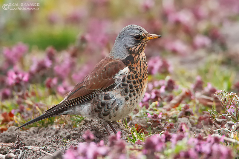 4. April 2013Kräftig gefärbte Wacholderdrossel mit hübschen Frühjahrsblüten. |