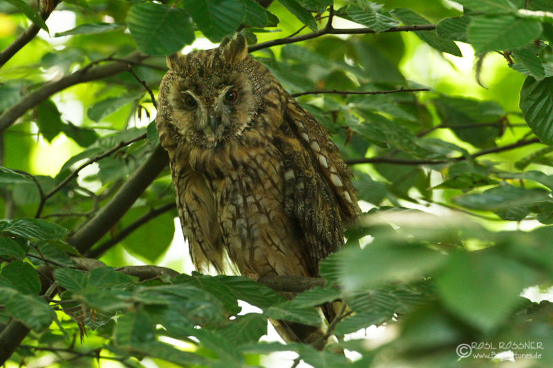 22. Juli 2013Und ein Foto von letzter Woche: eine Waldohreule, gut versteckt im Laub. |