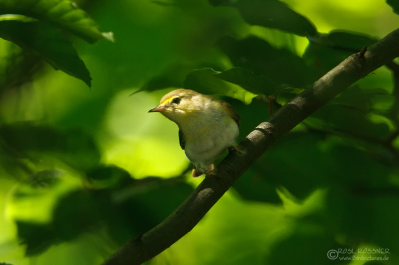 21. Juni 2013Brandneu hingegen sind die Aufnahmen vom Waldlaubsänger, der direkt hinter unserem Grundstück vorkommt. Er ist schwer zu sehen, denn er ist gelbgrün gefärbt, klein und huscht recht rastlos durch die grünen Blätter der hohen Bäume. |