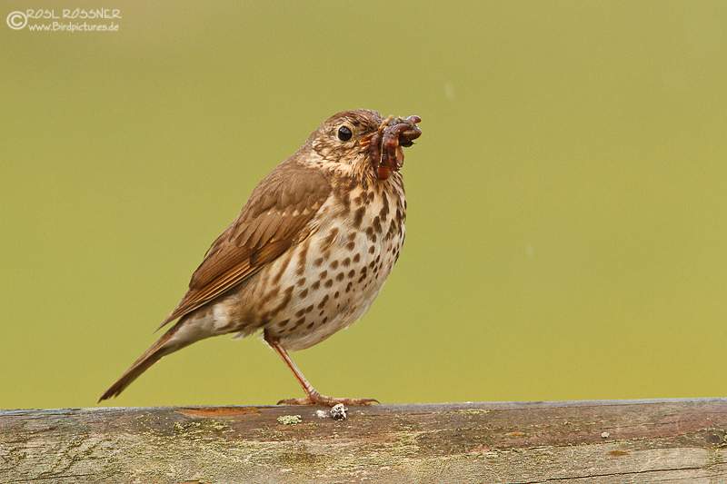 4. April 2013Die Singdrossel ist zierlich und unterscheidet sich von der Misteldrossel u.a. durch die andere Musterung des Bauchgefieders. |