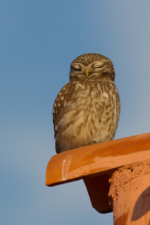 Der Urlaub bescherte uns jede Menge Eulen und Käuze... so auch diesen Steinkauz in der Morgensonne
