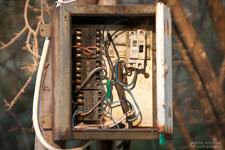 Manches sieht man nicht so eng... Unser Sicherungskasten am ersten "Campingplatz"