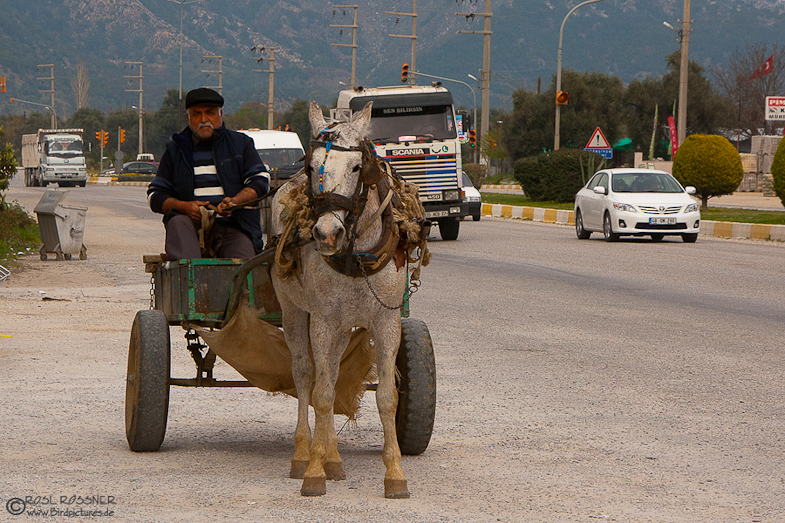 Ein typisches Bild: Schnellstraße und Pferdegespann, teilweise mussten wir auf der Autobahn anhalten, weil die Bauern Schafe über die Straße trieben...