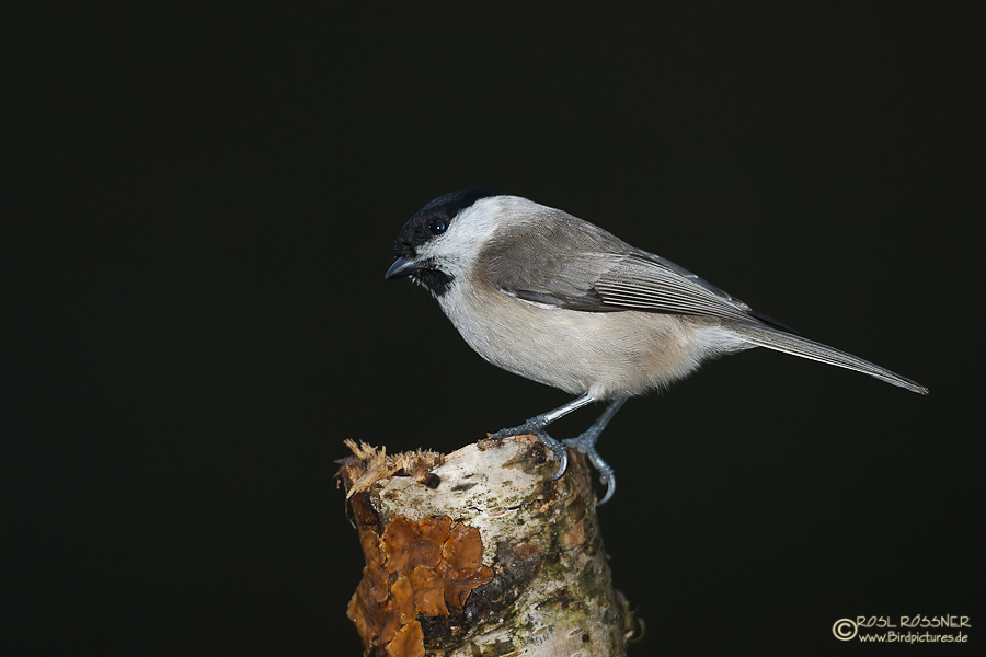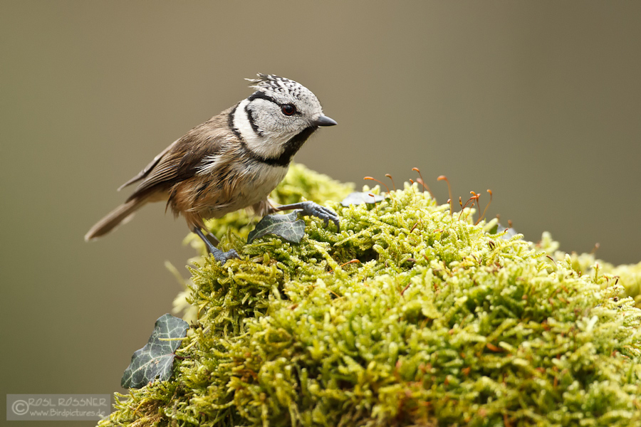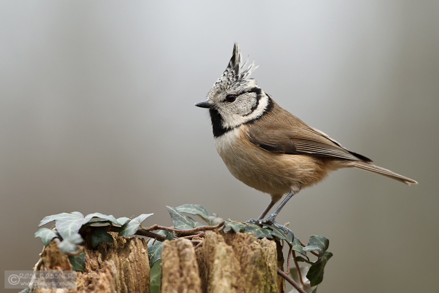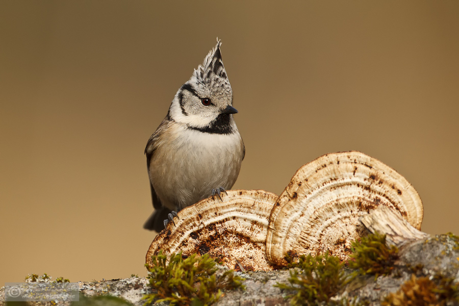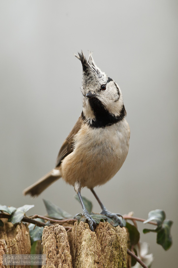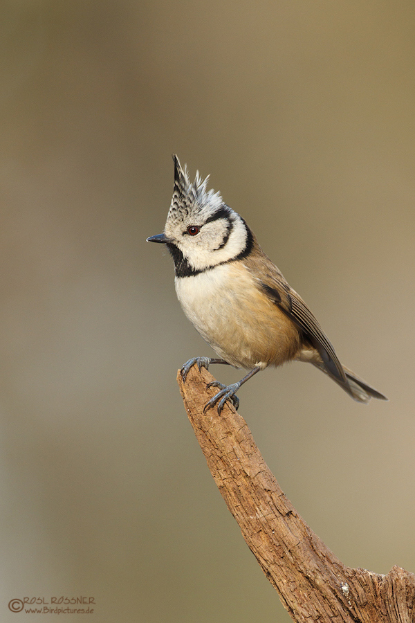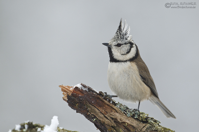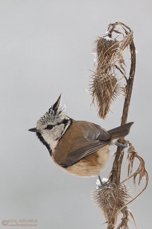 27. DEZEMBER 2010Die hübsche Haubenmeise Ton in Ton mit ihrem Landeplatz |