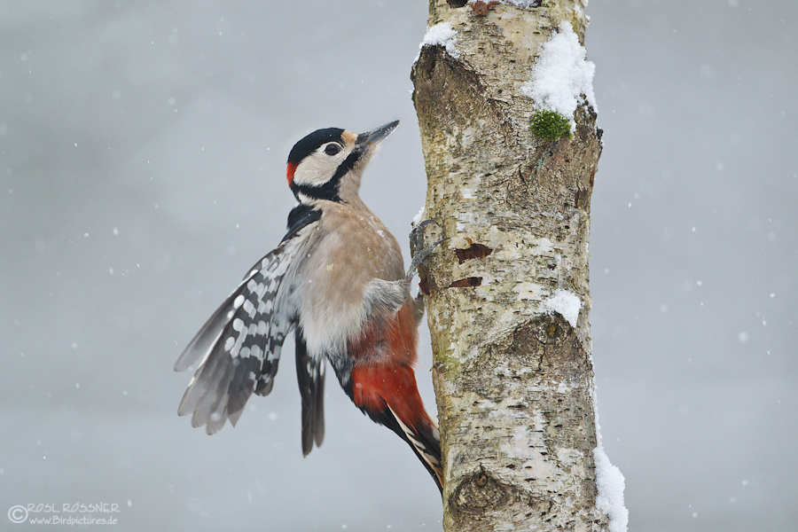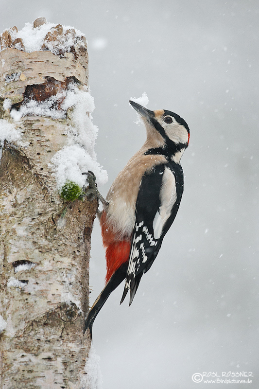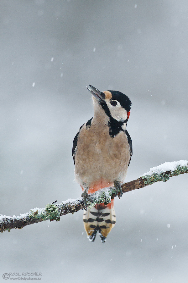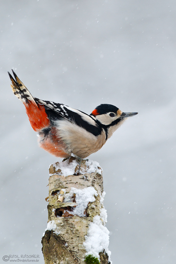 20. DEZEMBER 2010... der Buntspecht haben den Schnabel in den Schnee getaucht! |