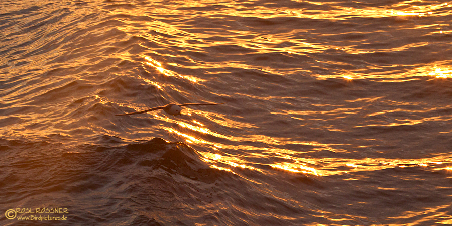 24. NOVEMBER 2010Dicht über der Wasseroberfläche fliegt ein Eissturmvogel in der goldenen Abendsonne |