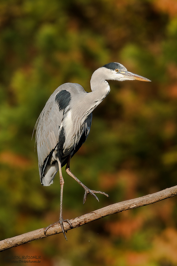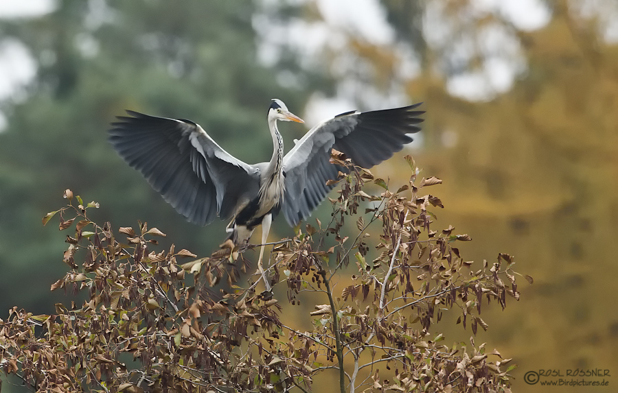 4. NOVEMBER 2010Graureiher vor dem herbstlich gefärbten Laub. |