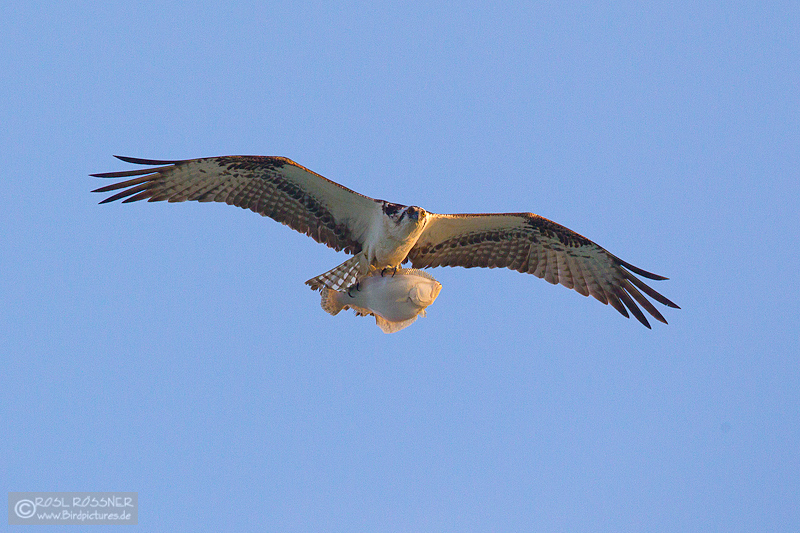 26. April 2011Der Fischadler hat einen riesigen Fisch gefangen und flog erfreulicherweise recht dicht an mir vorbei. |