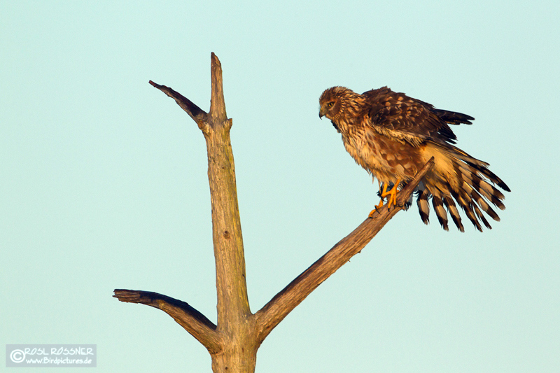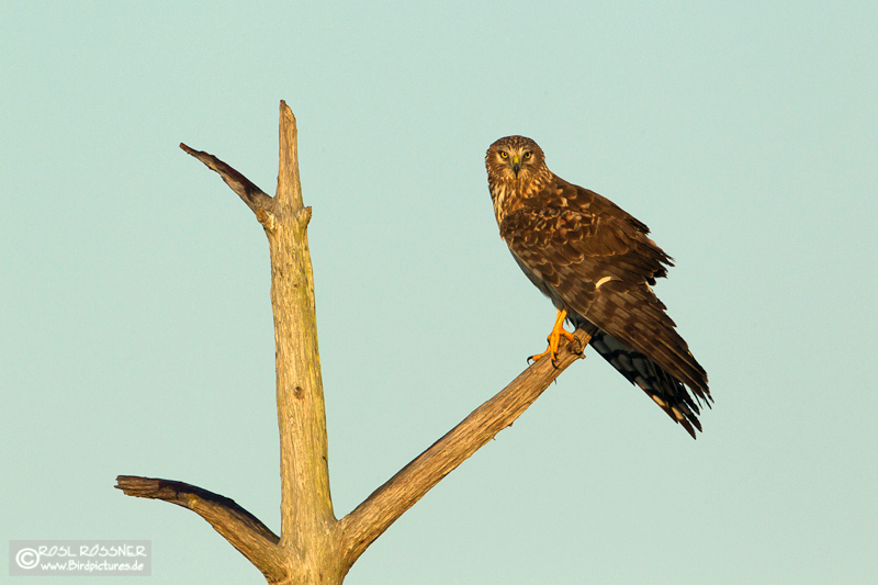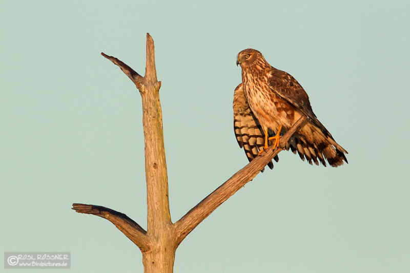 20. April 2011In schönstem Morgenlicht zeigte sich die weibliche Kornweihe recht wenig scheu. |