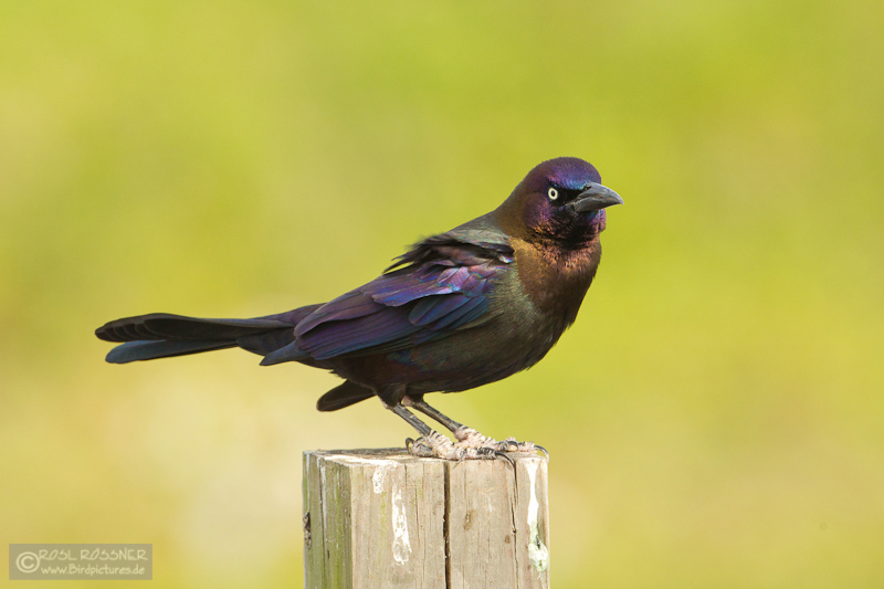 26. April 2011... dann sieht man erst, wie herrlich sein Federkleid schimmert, fast metallisch im Glanz: der Purpurgrackel. |