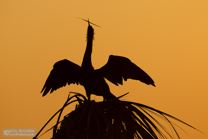 14. April 2011... einmal richtig durchschlafen... (Schlangenhalsvogel präsentiert sein Nistmaterial im Abendlicht) |
