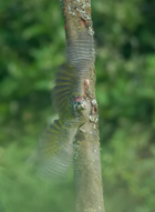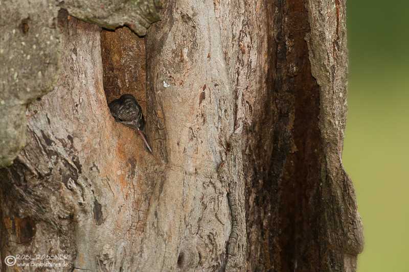 19. April 2011Hier sammelt er mit seiner klebrigen Zunge gerade ein paar Termiten vom Stamm. |