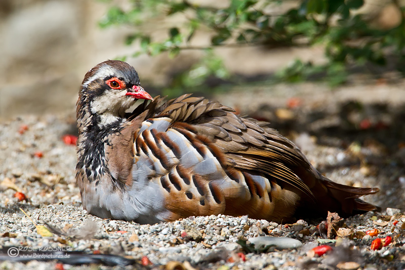 12. Oktober 2011Ein Rothuhn sonnt sich versteckt unter den Büschen. |