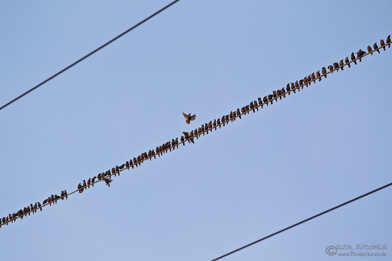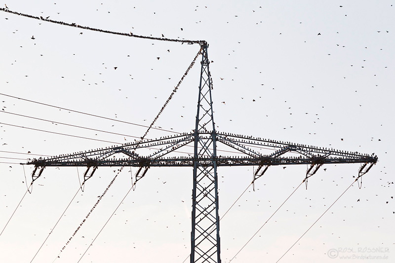 22. Oktober 2011Sie sammeln sich auf den Stromleitungen, dicht an dicht sitzend. |