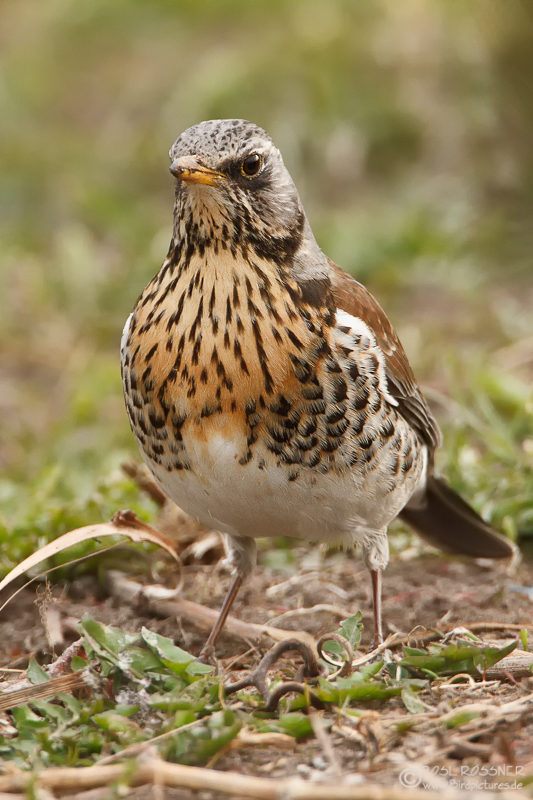 4. April 2013Die Singdrossel ist zierlich und unterscheidet sich von der Misteldrossel u.a. durch die andere Musterung des Bauchgefieders. |