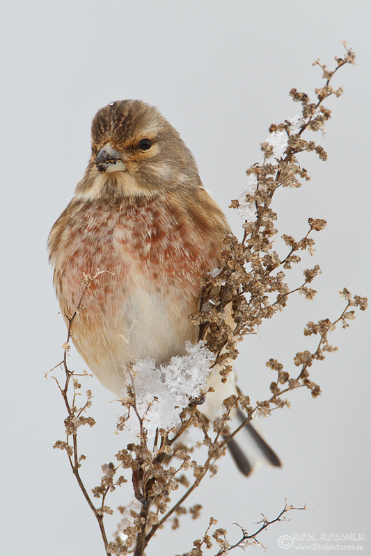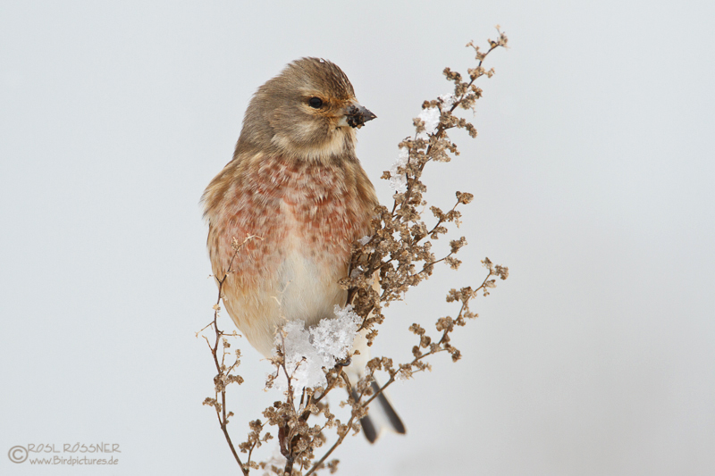 25. Februar 2013Ein Bluthänfling trotzt Eis und Schnee... |