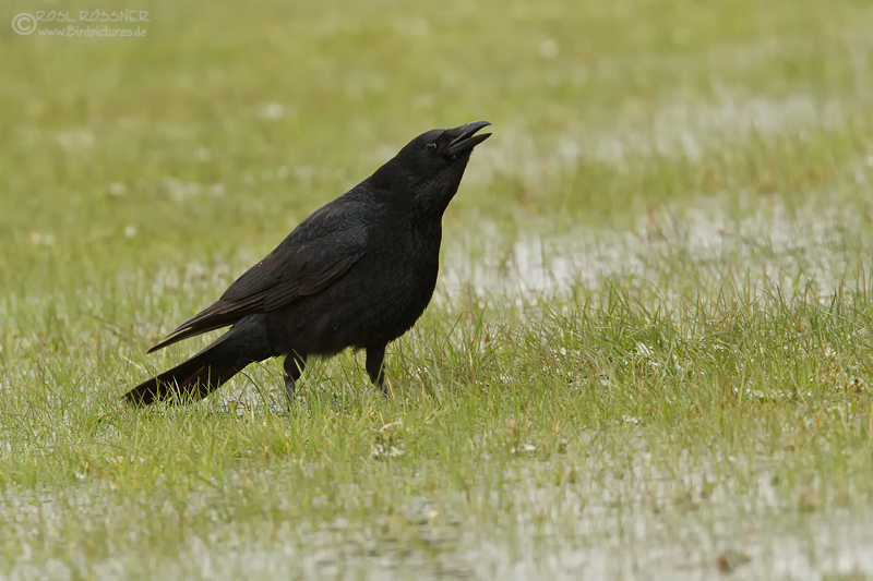 26. März 2013Rufende Rabenkrähe auf den überschwemmten Wiesen bei Kandel. |