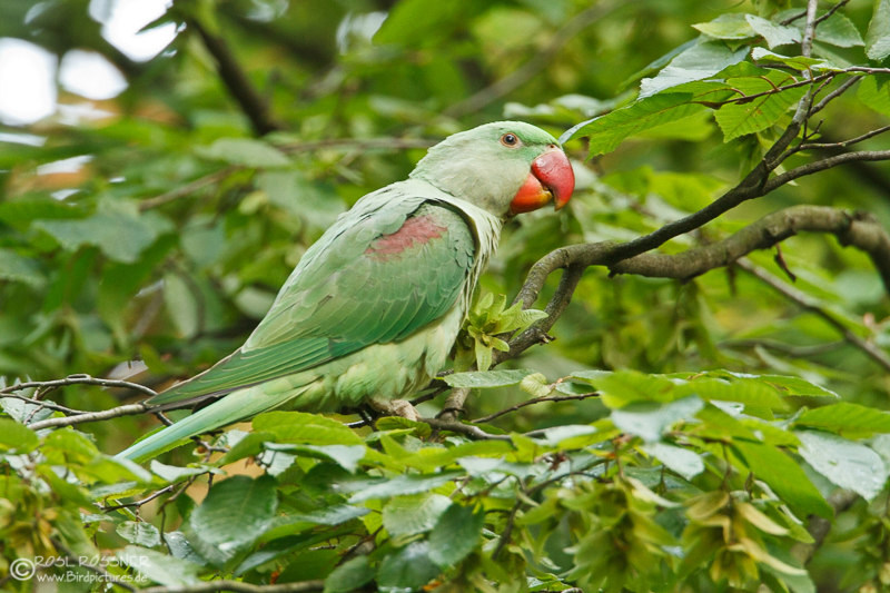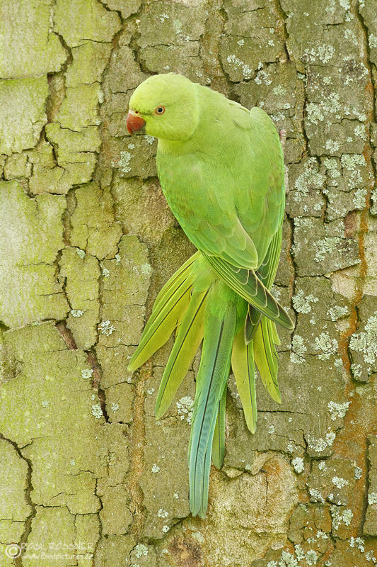 27. September 2013Endlich habe ich die zweite freilebende Papageienart Deutschlands zu Gesicht bekommen: die Alexandersittiche. Sie sind etwa 60 cm groß und unterscheiden sich von dem kleineren Halsbandsittich durch ein paar Merkmale: |